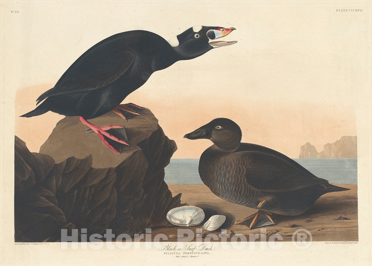 Audubon, Birds of America, Black or Surf Duck, 1848 : Art Print