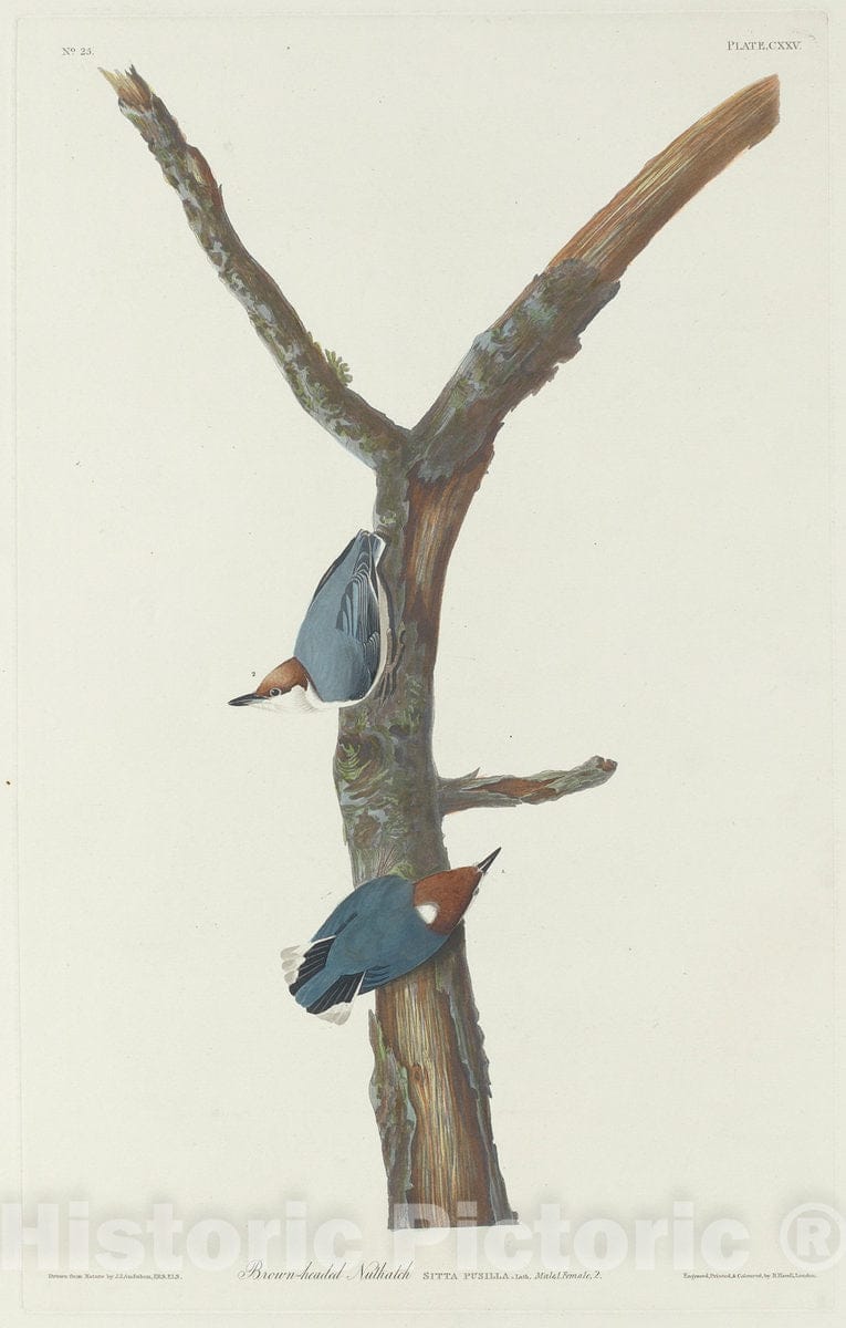 Audubon, Birds of America, Brown-Headed Nuthatch, 1848 : Art Print