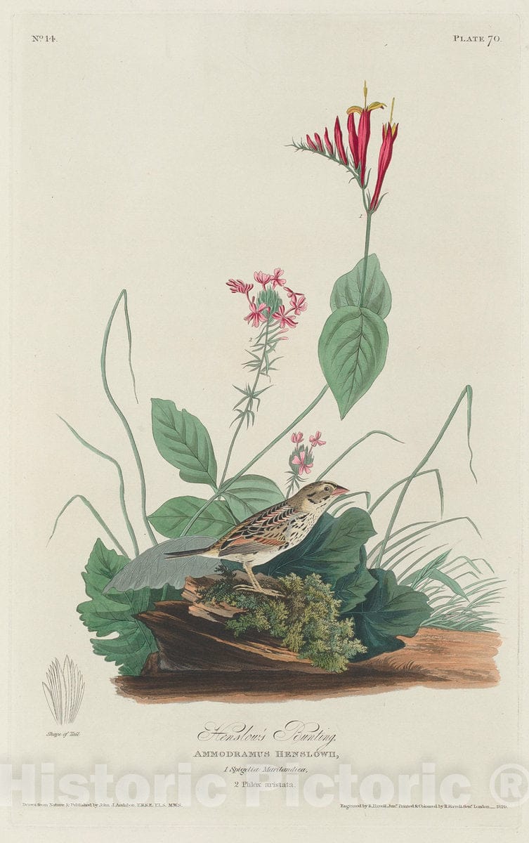 Audubon, Birds of America, Henslow's Bunting, 1848 : Art Print