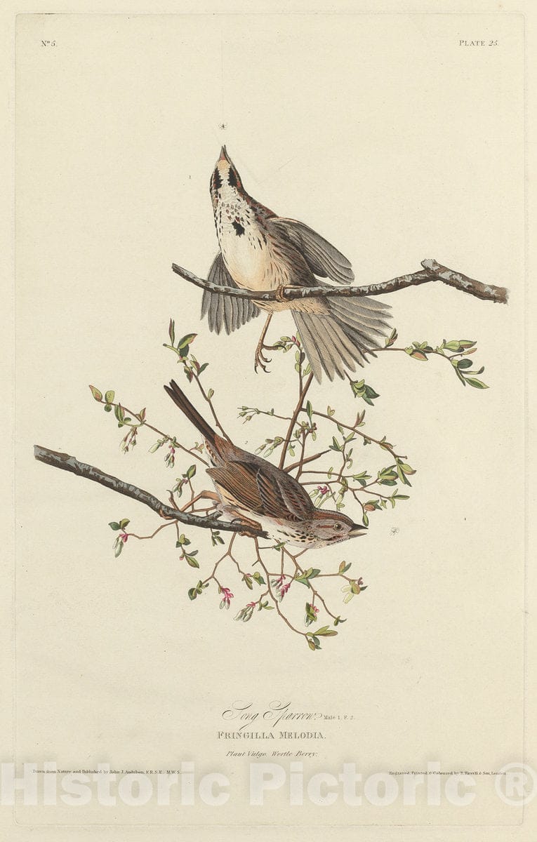 Audubon, Birds of America, Song Sparrow, 1848 : Art Print