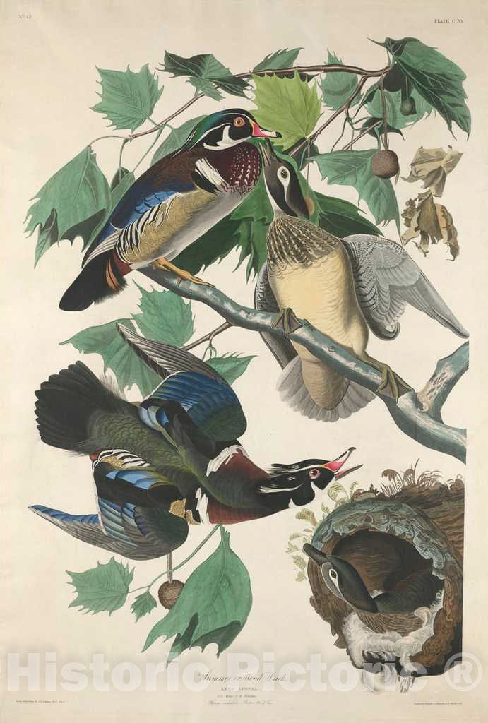 Audubon, Birds of America, Summer or Wood Duck, 1848 : Art Print