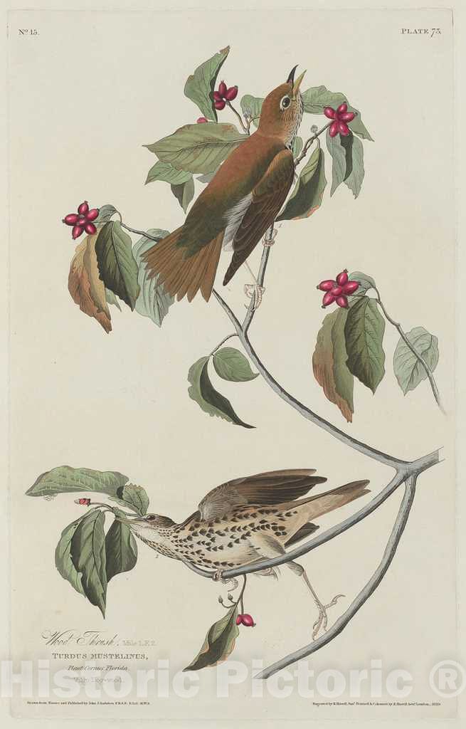 Audubon, Birds of America, Wood Thrush, 1848 : Art Print