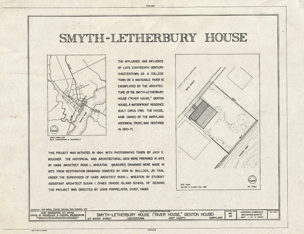 Blueprint 1. Title Sheet - Smyth-Letherbury House, 107 Water Street, Chestertown, Kent County, MD