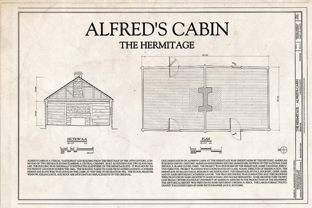 Blueprint 1. Section and Plan - The Hermitage, Alfred's Cabin, 4580 Rachel's Lane, Hermitage, Davidson County, TN