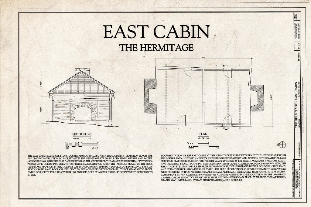 Blueprint 1. Section and Plan - The Hermitage, East Cabin, 4580 Rachel's Lane, Hermitage, Davidson County, TN