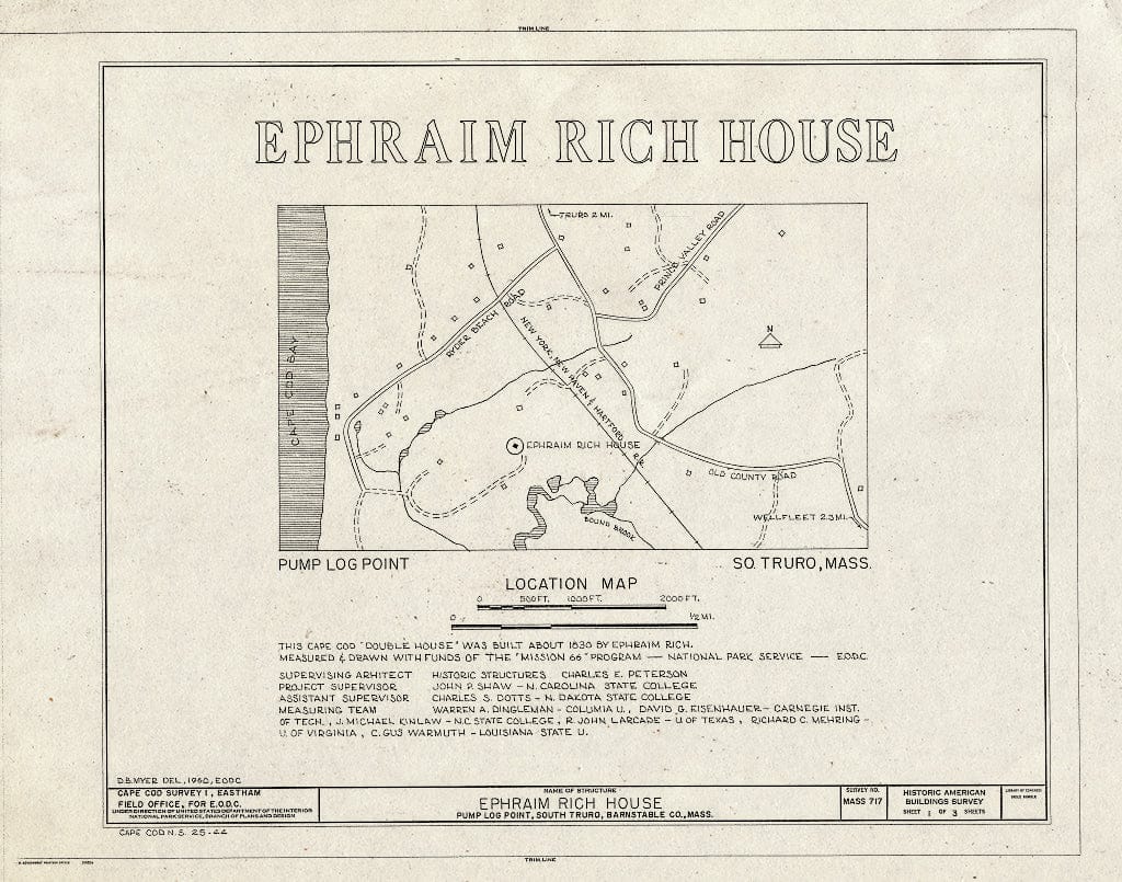Blueprint 1. Title Sheet - Ephraim Rich House, Pump Log Point, Truro, Barnstable County, MA