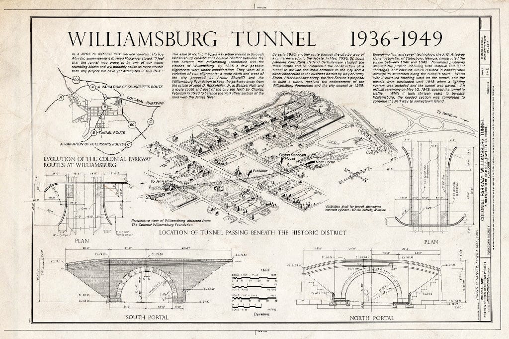 • .Blueprint 1. Williamsburg Tunnel, 1936-39 - Colonial Parkway, Williamsburg Tunnel.3 Mile South of C&O Railroad underpass, Yorktown, York County, VA