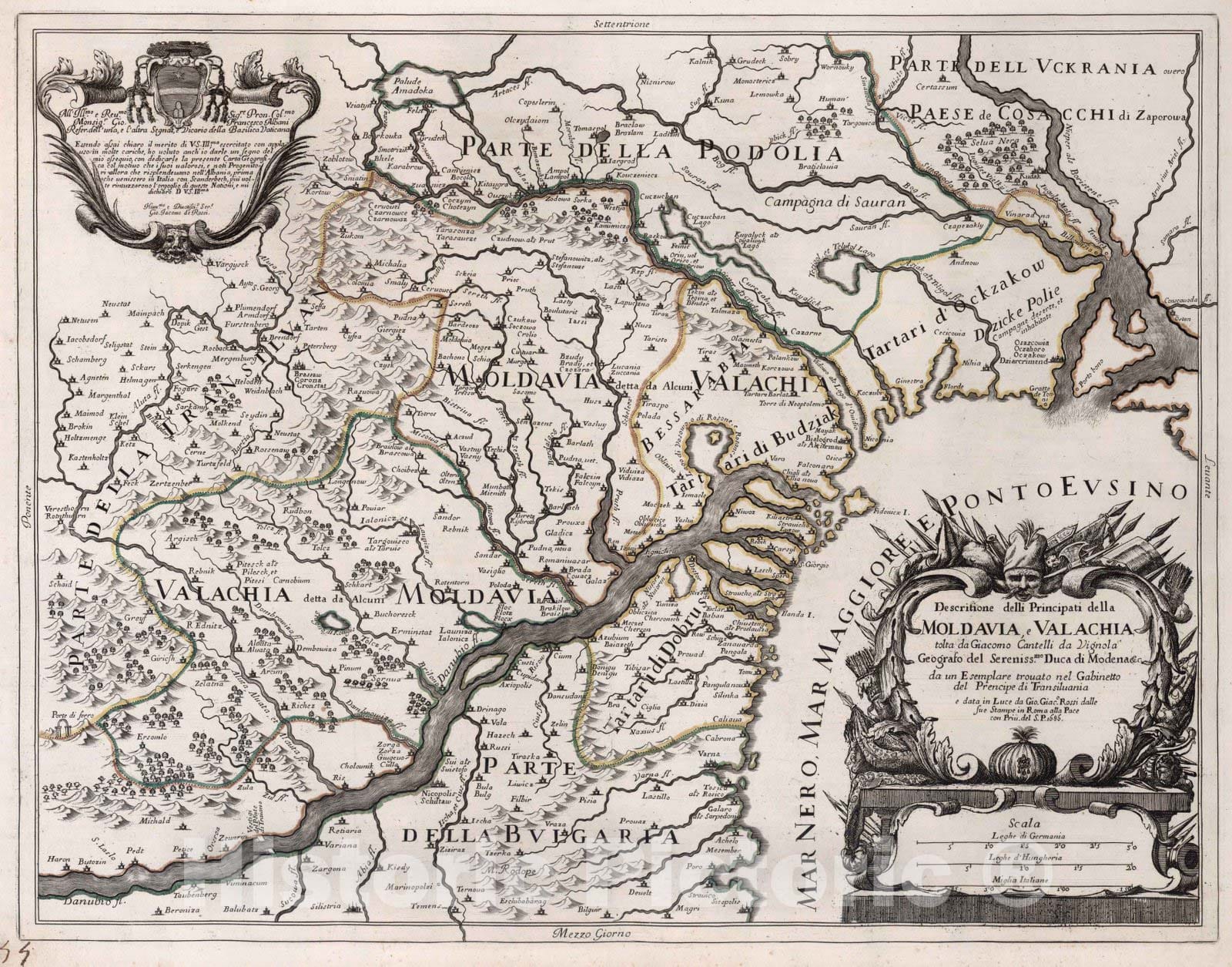 • .Historic Map : Moldova, Europe, EasternDescritione delli Principati della Moldavia, e Valachia 1686 , Vintage Wall Art