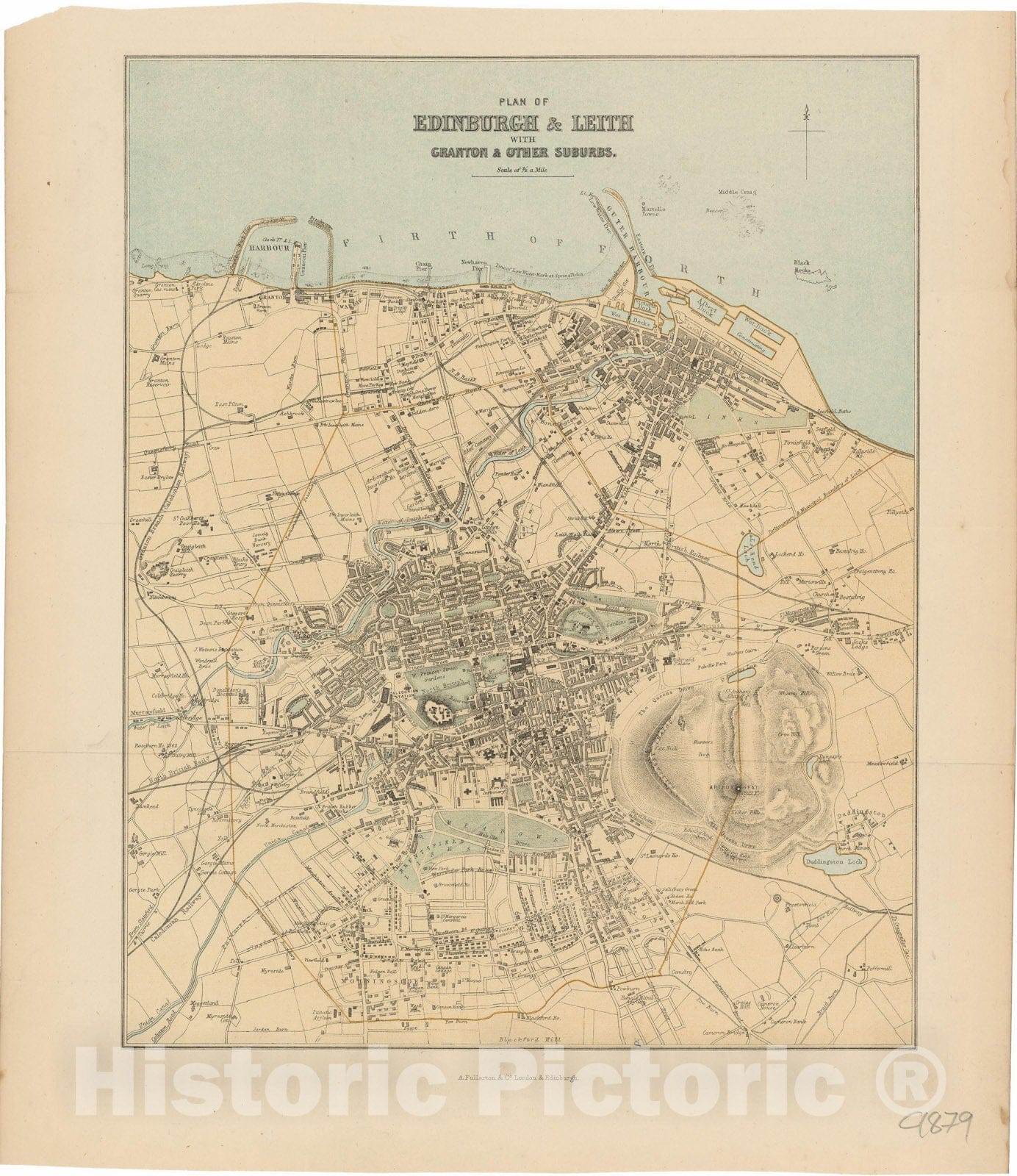 • .Historic Map : Europe, Edinburgh & Leith , Vintage Wall Art