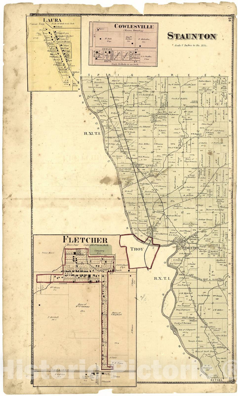 Historic 1871 Map - Atlas of Miami Co, Ohio - Staunton - Atlas of Miami County, Ohio