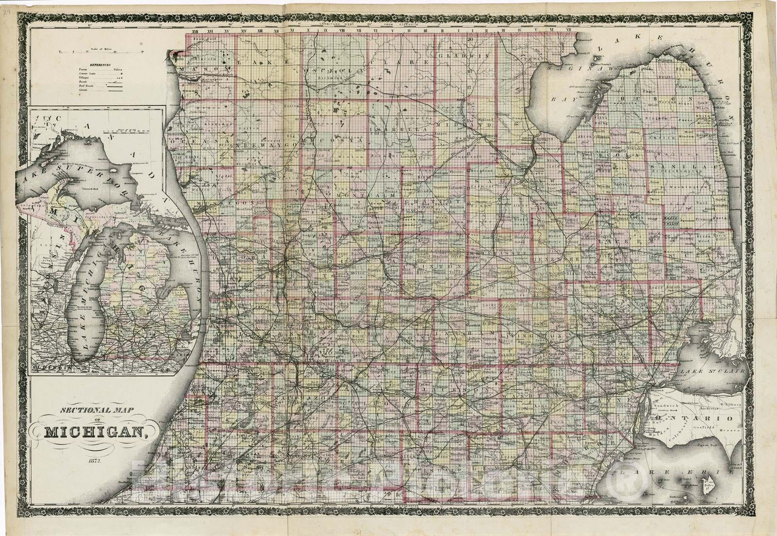 Historic 1873 Map - Atlas of Clinton County, Michigan - Sectional Map of Michigan