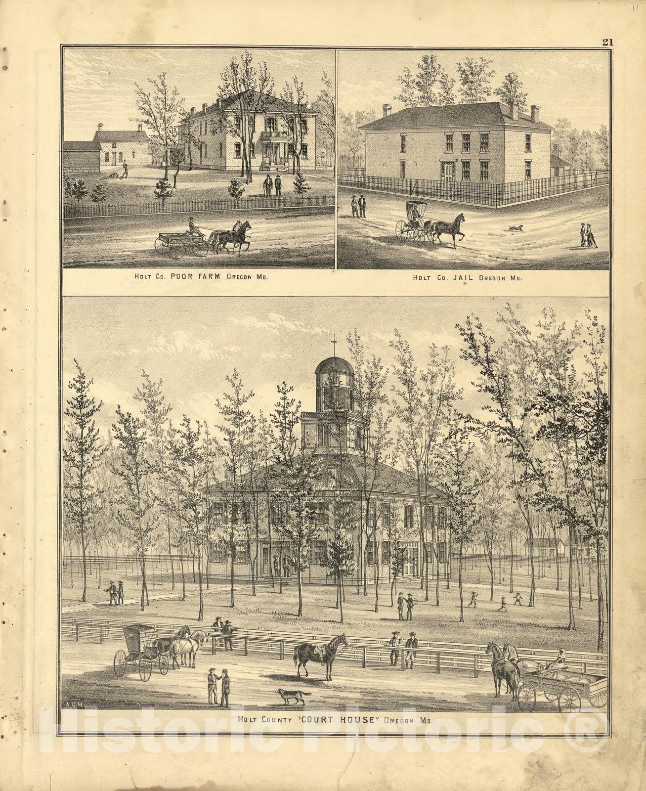 • Historic 1877 Map - an Illustrated Historical Atlas map of Holt County, Mo. - Map of Oregon, Missouri; Township 63 North Range 39 West