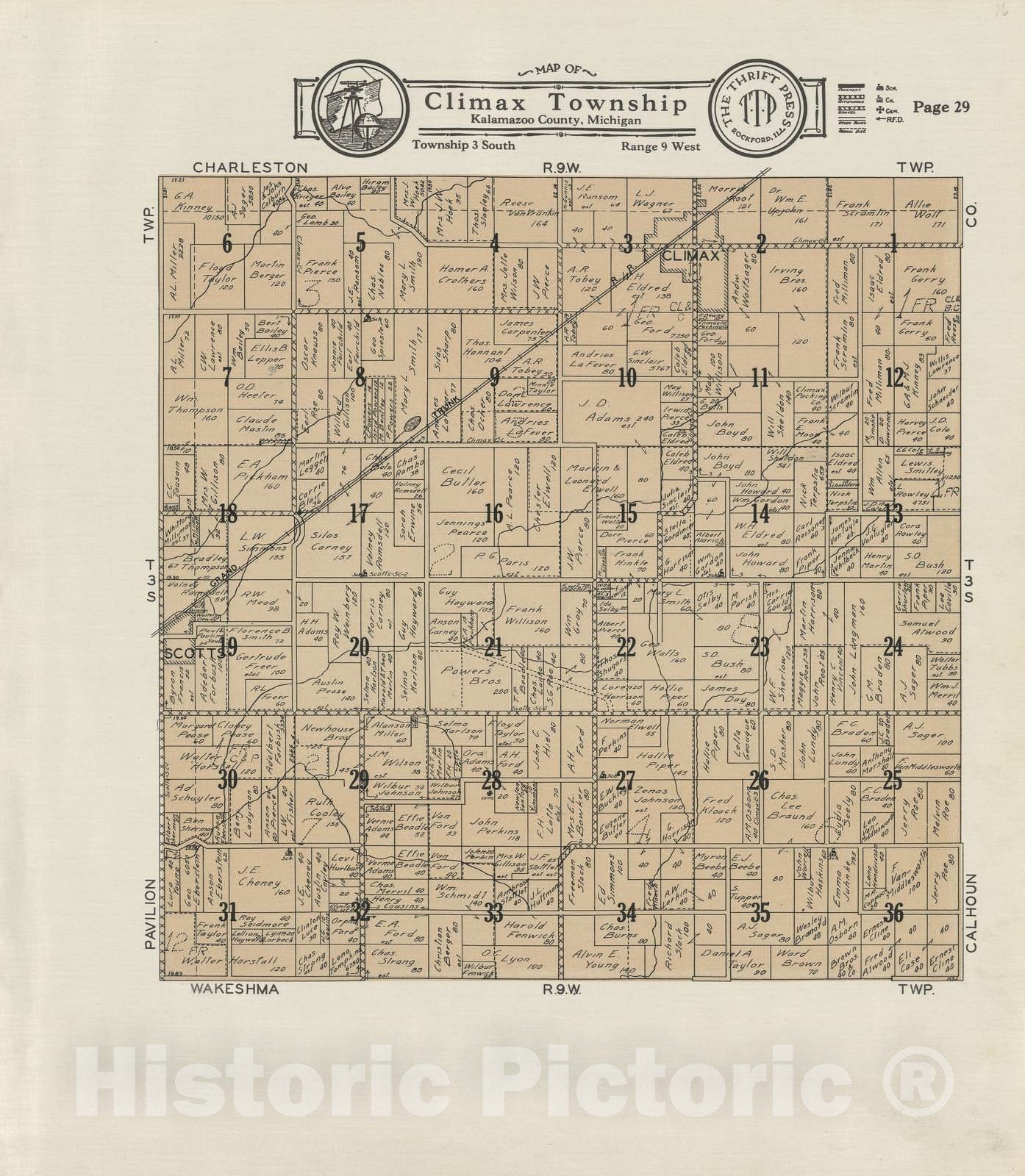 Historic 1928 Map - Plat Book of Kalamazoo County, Michigan - Map of Climax Township - Atlas and plat Book, Kalamazoo County, Michigan