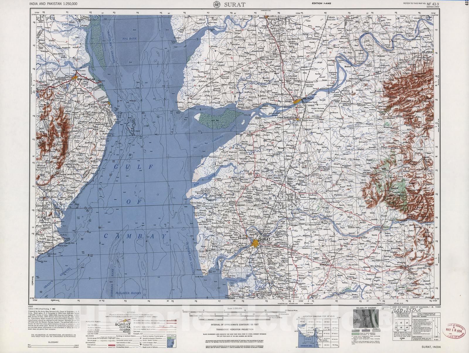 Historic 1955 Map - India and Pakistan 1:250,000. - Surat, 1956