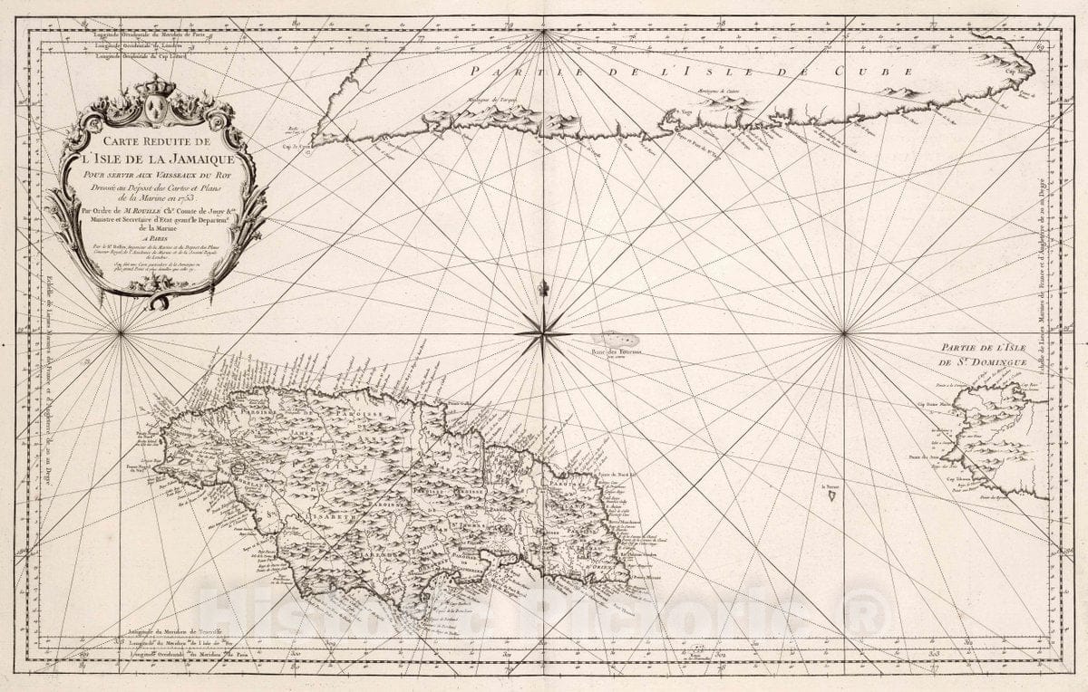 • .Historic Map : Barbados, Carte de l'Isle de la Barbade, 1758 Chart , Vintage Wall Art