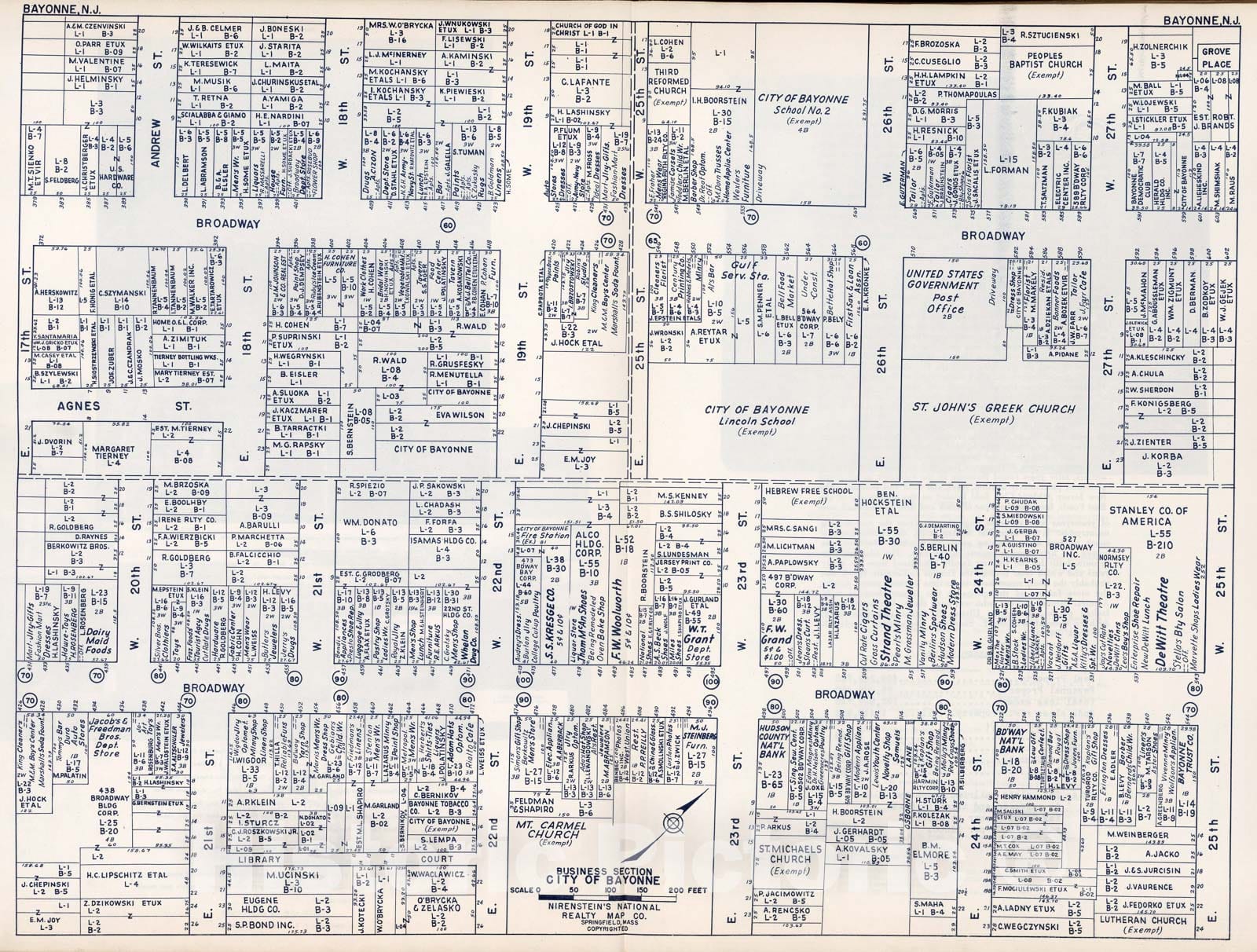 Historic Map : Business Section, City of Bayonne (New Jersey)., 1947, Vintage Wall Decor