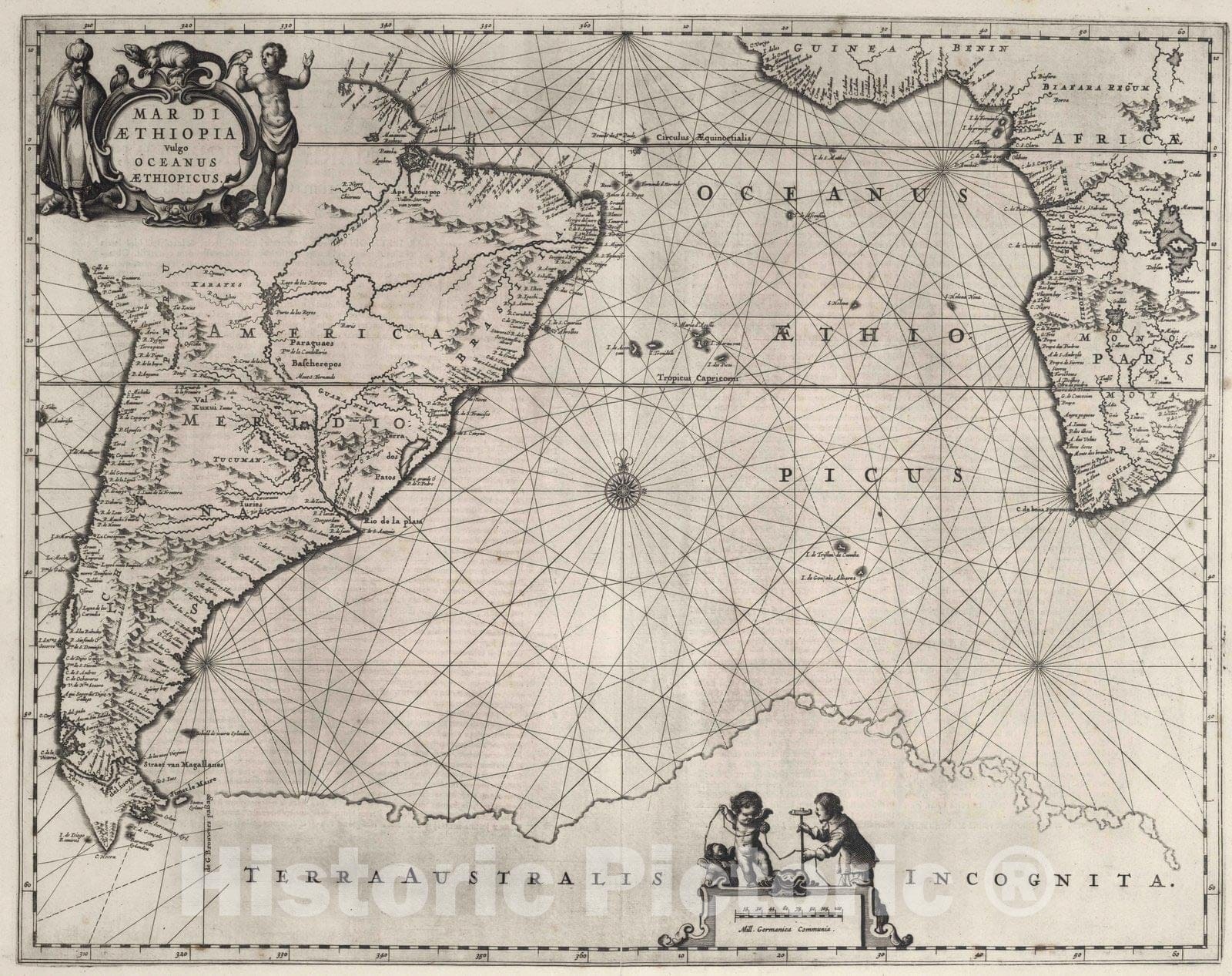 Historic Map : Chart Atlas - 1650 Mar di Aethiopia vulgo Oceanus Aethiopicus. - Vintage Wall Art