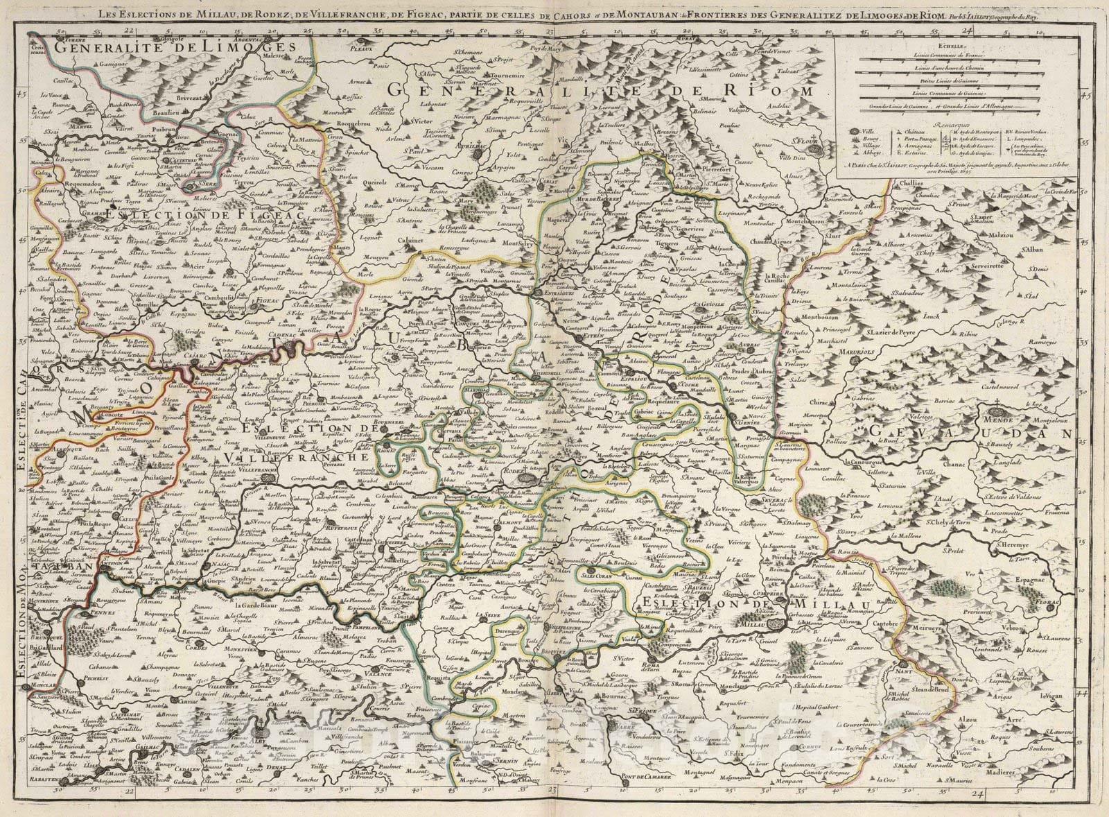 Historic Map : Montauban , France 1695 Les Generalitez de Montauban et de Toulouse (northeast sheet). , Vintage Wall Art