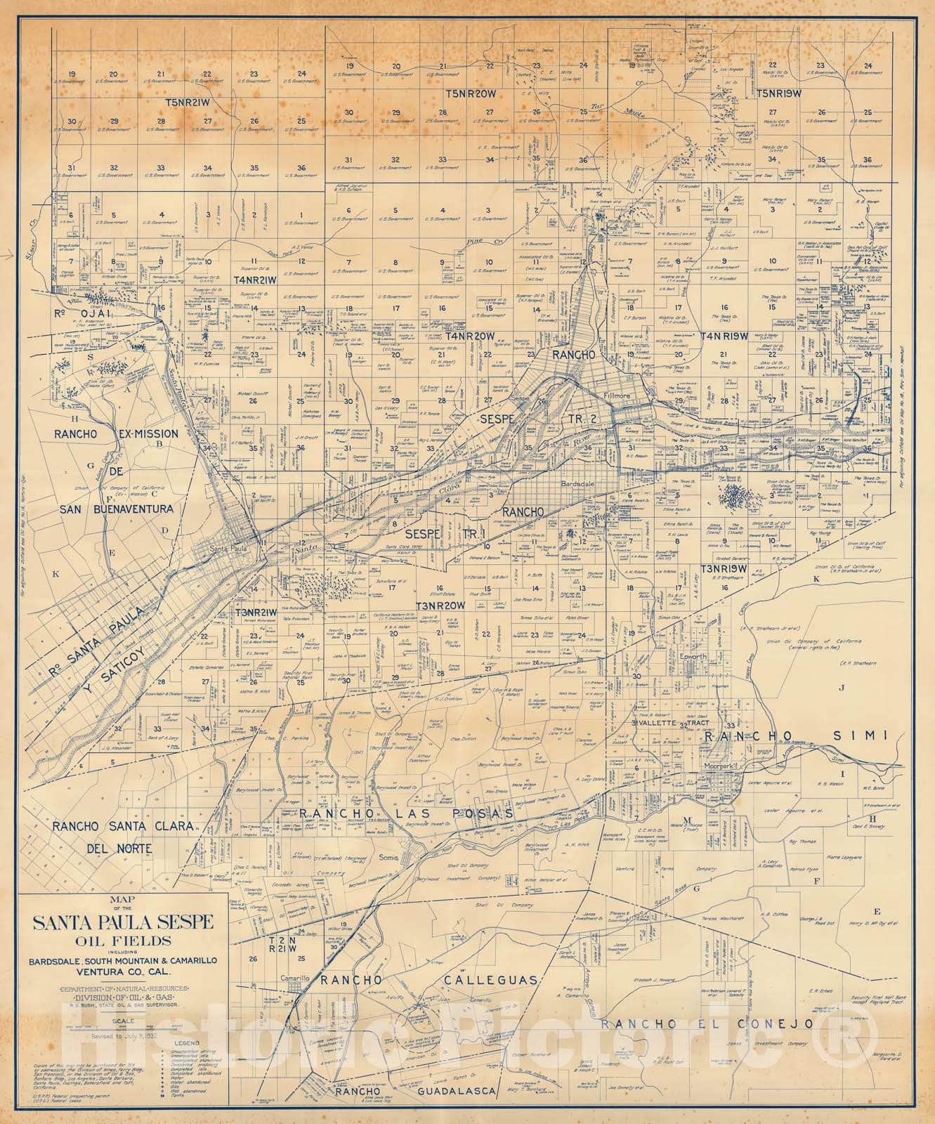 Historic Map - Map of the Santa Paula-Sespe Oil Fields, Including Bardsdale, South Mountain & Camarillo, Ventura County, California, 1920 - Vintage Wall Art