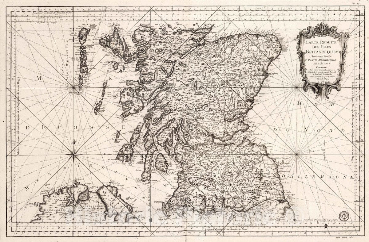 Historic Map : Scotland, Carte Reduite des Isles Britanniques Troisieme Feuille Partie Meridionale de l'Ecosse, 1757 Chart , Vintage Wall Art