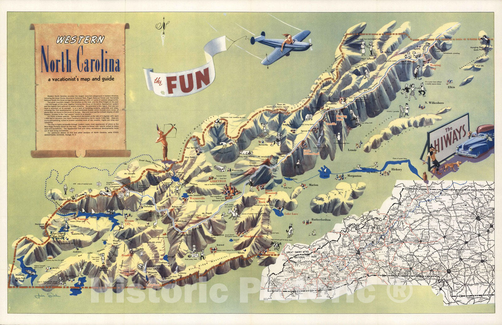 Historic Map : Western North Carolina, a Vacationist's Map and Guide, 1956 - Vintage Wall Art