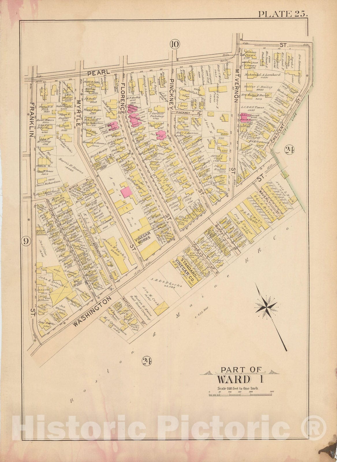 Historic Map : Atlas City of Somerville, Somerville 1895 Plate 025 , Vintage Wall Art