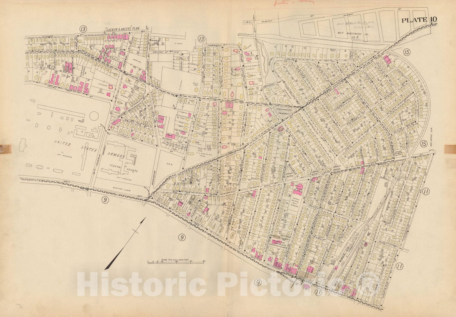 • .Historic Map : Atlas City of Springfield and the Town of Longmeadow 1920 Plate 010 , Vintage Wall Art