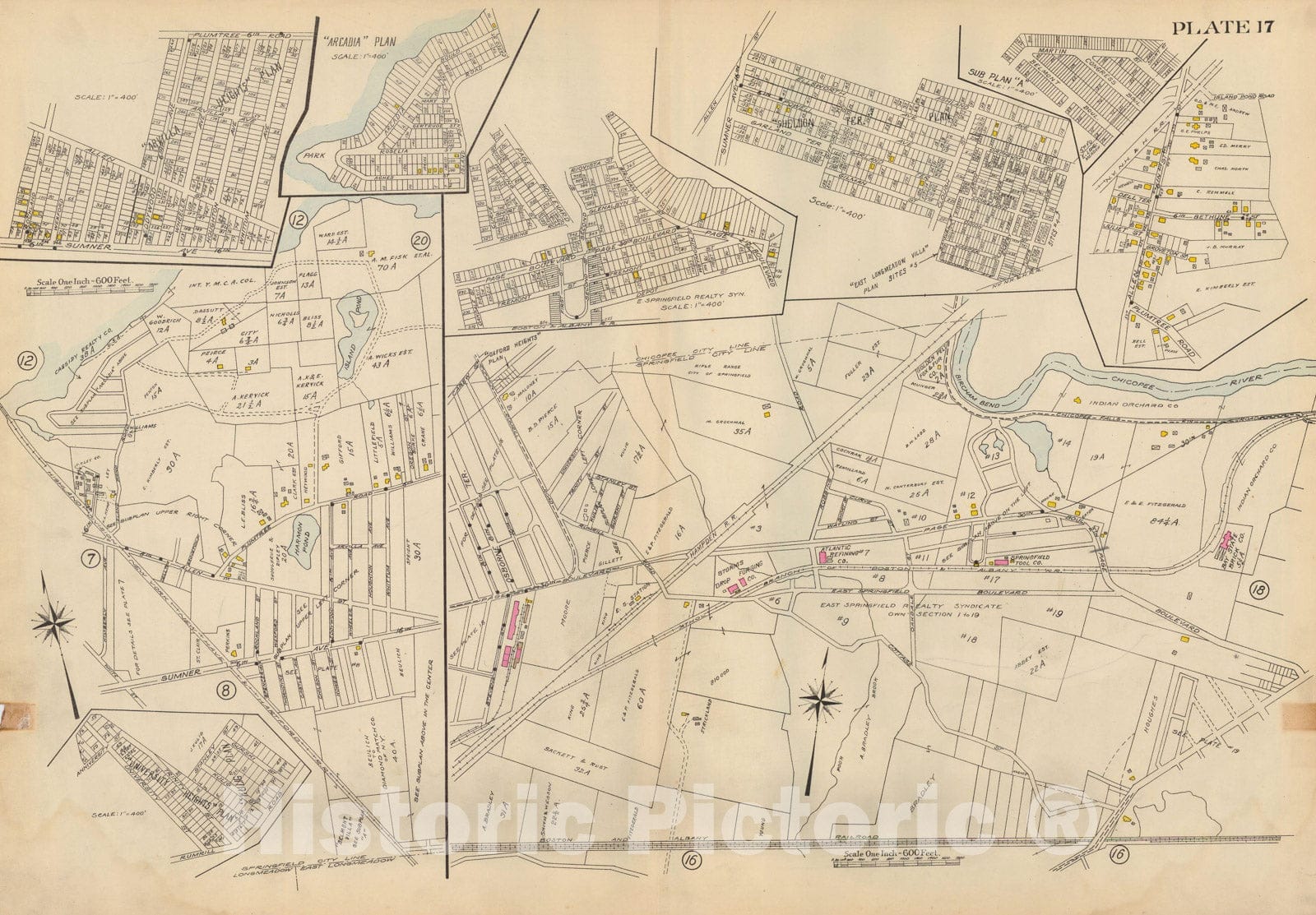 • Historic Map : Atlas City of Springfield and the Town of Longmeadow 1920 Plate 017 , Vintage Wall Art