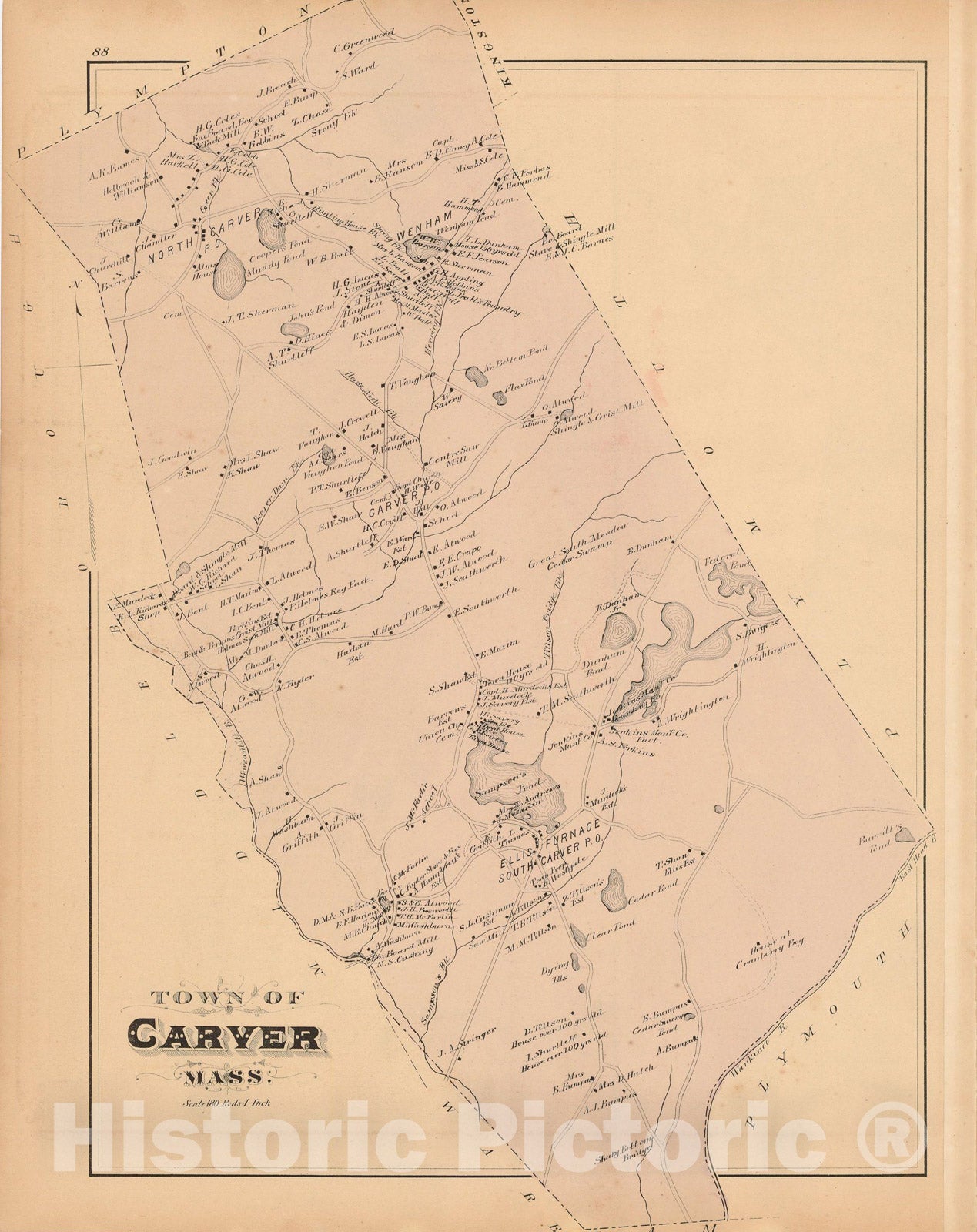 • .Historic Map : Atlas of Plymouth County Massachusetts, Carver 1879 , Vintage Wall Art