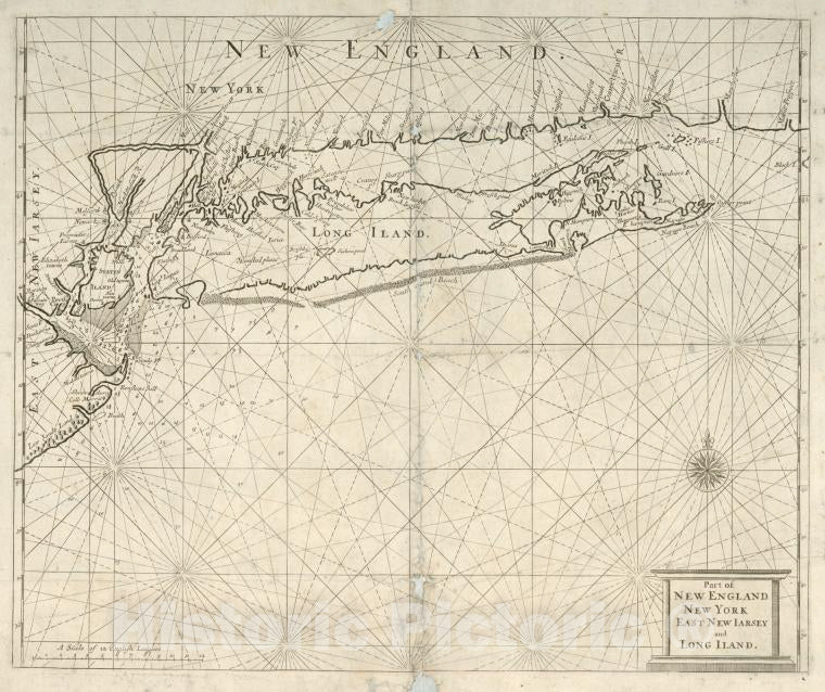Historic 1689-1706 Map - Part Of New England, New York, East New Iarsey And Long Iland. - Vintage Wall Art