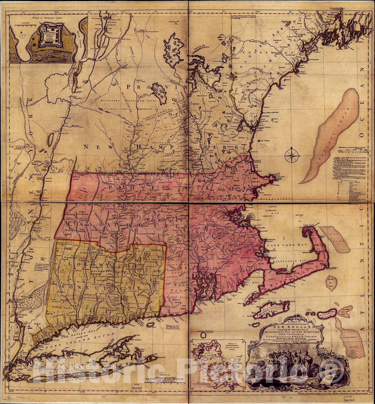 Historic 1755 Map - A map of The Most inhabited Part of New England; containing The Provinces of Massachusets Bay and New Hampshire, with The Colonies of Konektikut and Rhode Island