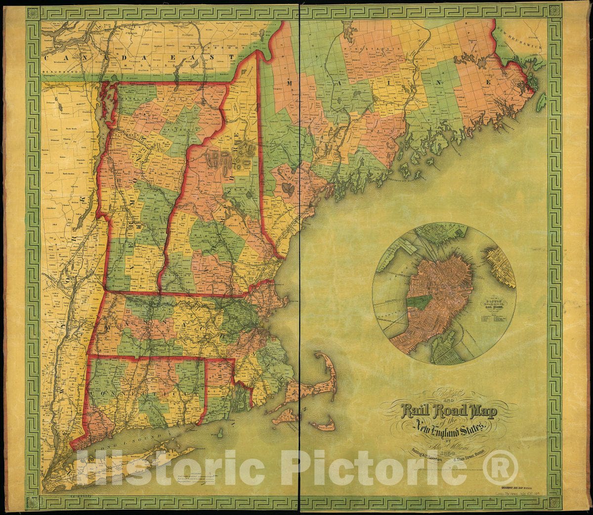 Historic 1854 Map - Telegraph and Rail Road map of The New England States.