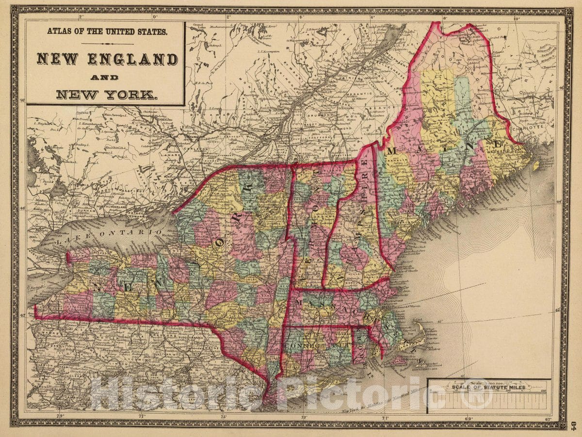 Historic Map : Atlas of The United States. New England and New York. (by H.H. Lloyd. Published by Stedman, Brown & Lyon, Baltimore. 1873), 1873 Atlas - Vintage Wall Art