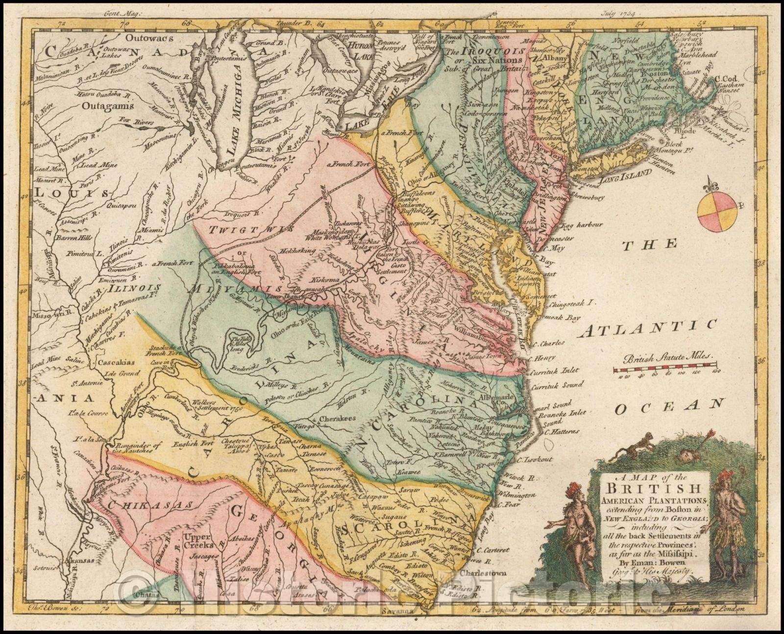 Historic Map - A Map of the British American Plantations extending from Boston in New England to Georgia, 1754, Gentleman's Magazine v2