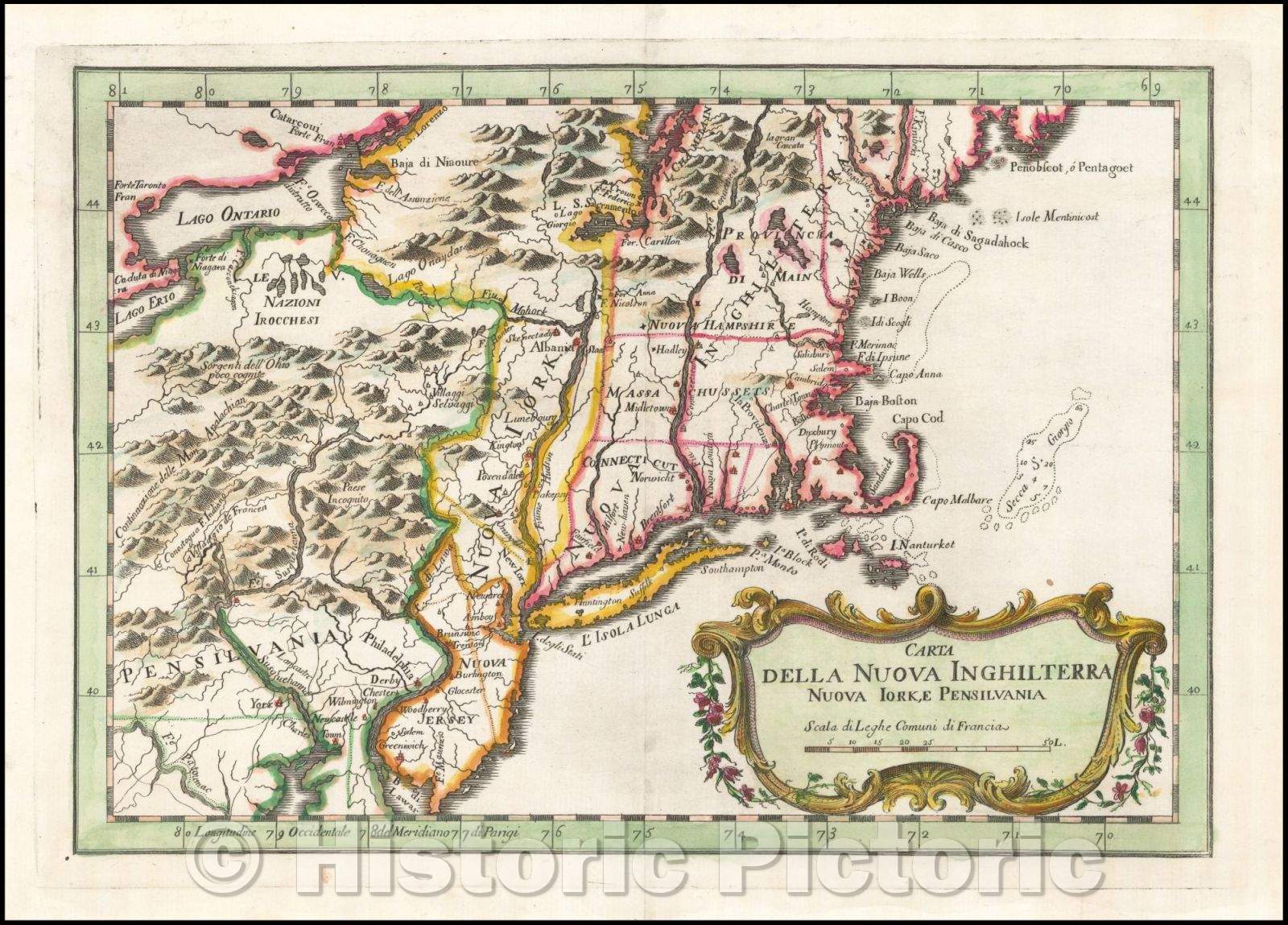 Historic Map - Carta Della Nuova Inghilterra Nuova Yorc, E Pensilvania/Italian edition of Bellin's Map of the Northeast and New England Region, 1781 - Vintage Wall Art