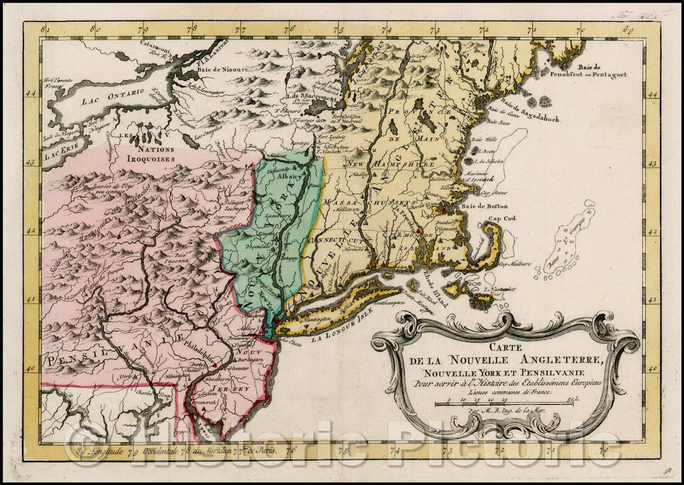 • Historic Map - Carte De La Nouvelle Angleterre, Nouvelle Yorck et Pensilvanie/Card New England, New Yorck and Pensilvanie, 1770, A. Krevelt - Vintage Wall Art