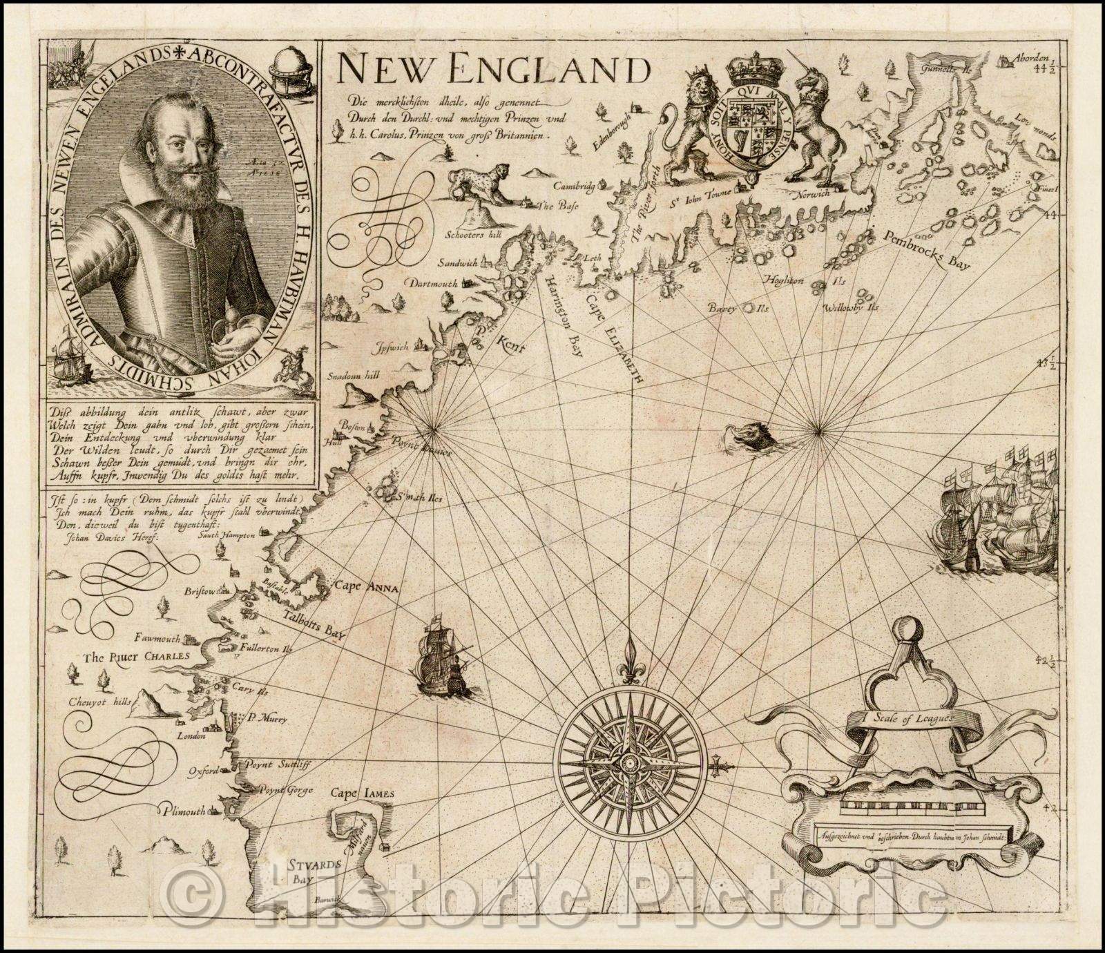 Historic Map - New England. Die Mercklichsten Dheile, also Genennet durch den Durchl: und Mechtigen Prinzen und H.H. Carolus, Prinzen von Gross Britannien, 1617 v2
