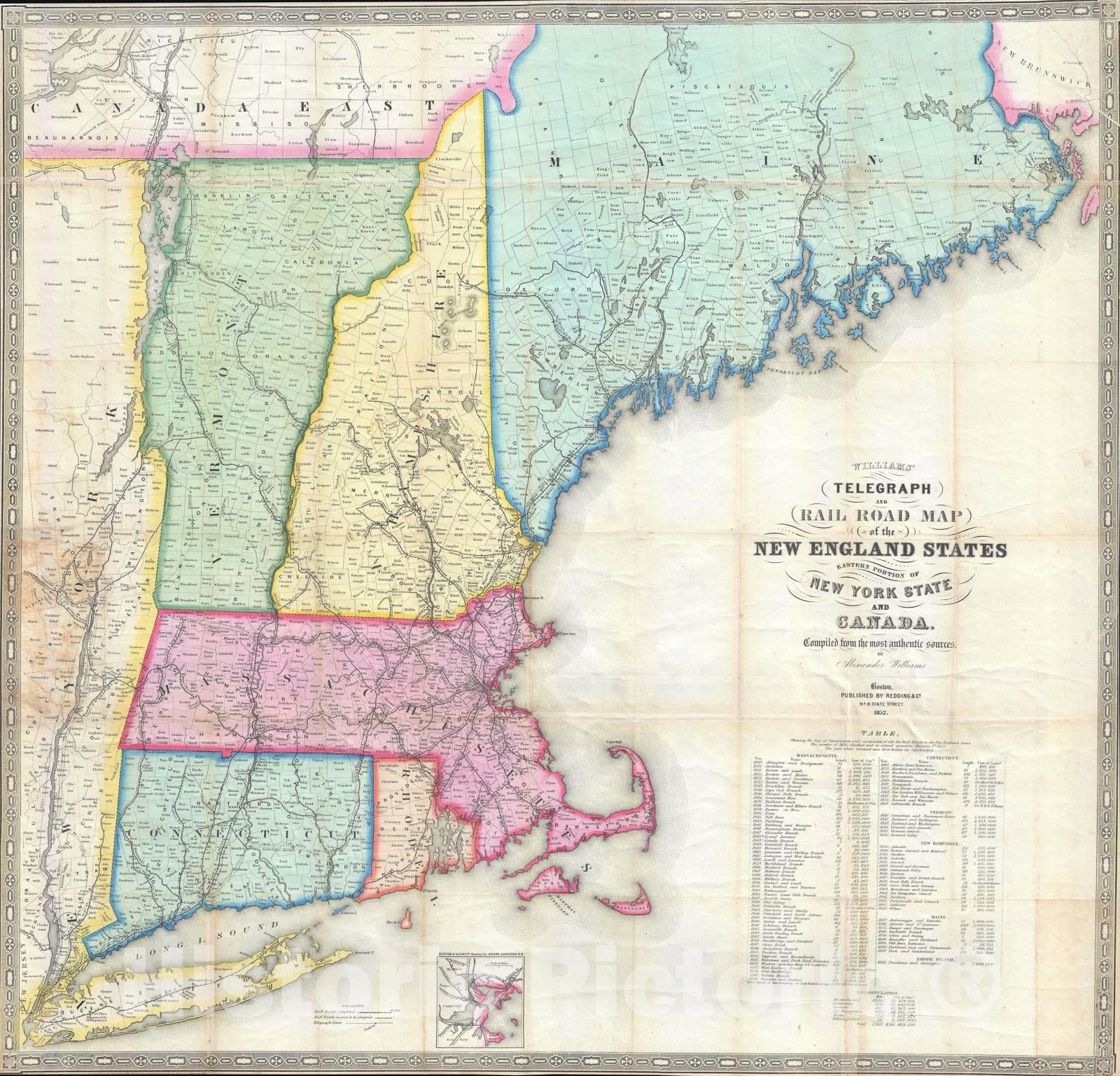 New England: Telegraph and Railroad, Williams and Redding, 1852