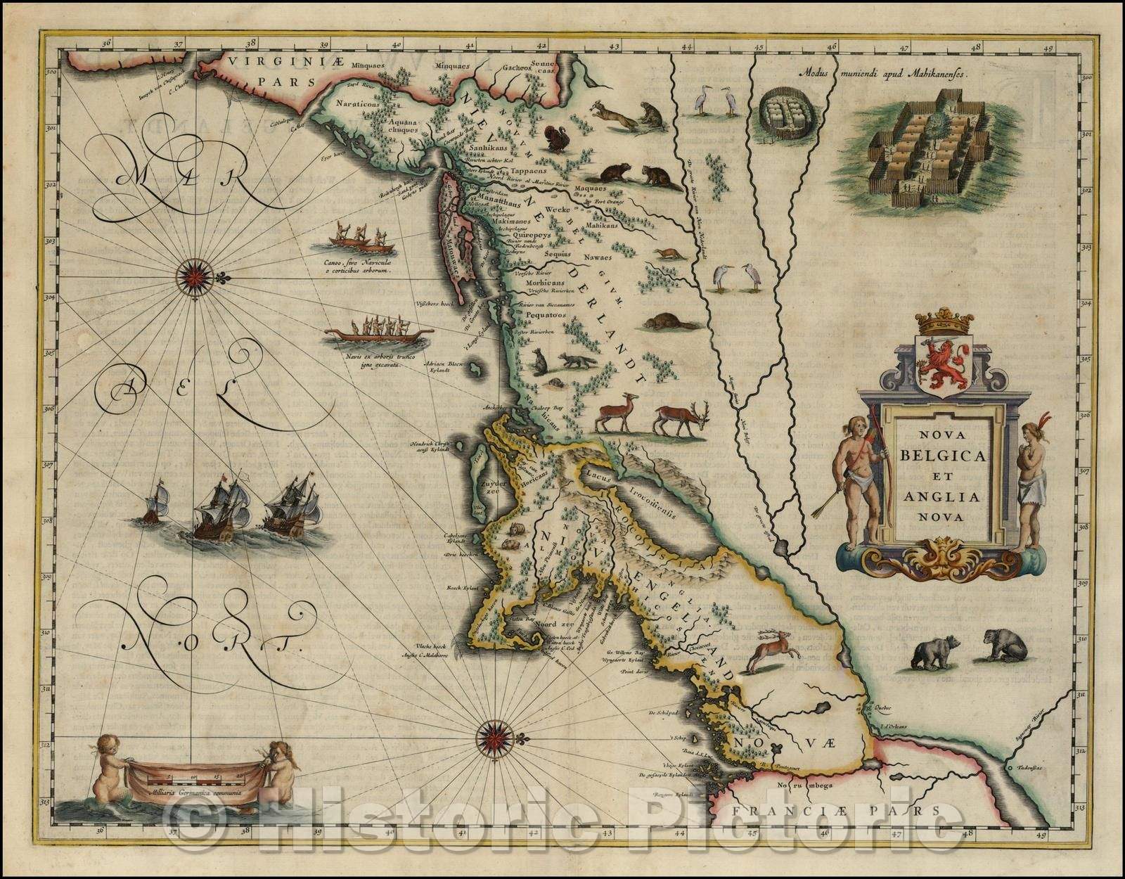 Historic Map - Nova Belgica Et Anglia Nova [Unrecorded 1st Edition!] / Blaeu's Map of New England and the Northeast, 1635, Willem Janszoon Blaeu - Vintage Wall Art