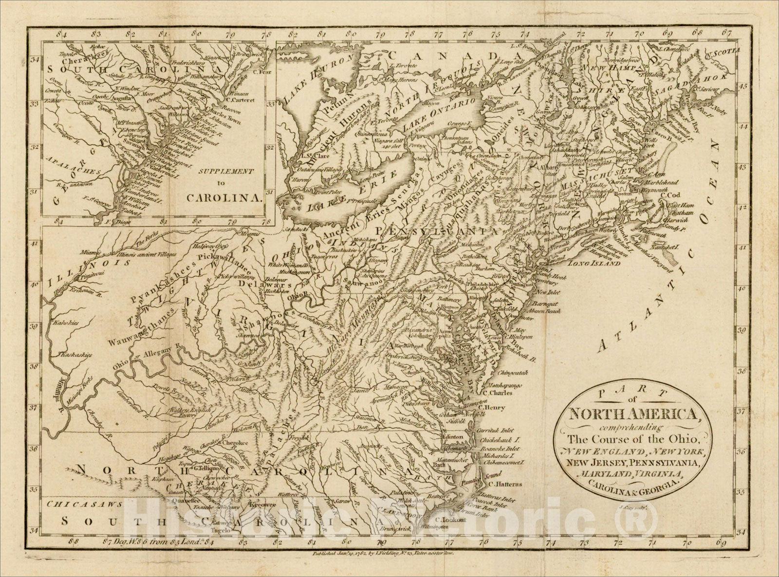 Historic Map : Part of North America, comprehending The Course of the Ohio, New England and New York, New Jersey, Pennsylvania, Maryland, Virginia, 1782, Vintage Wall Art