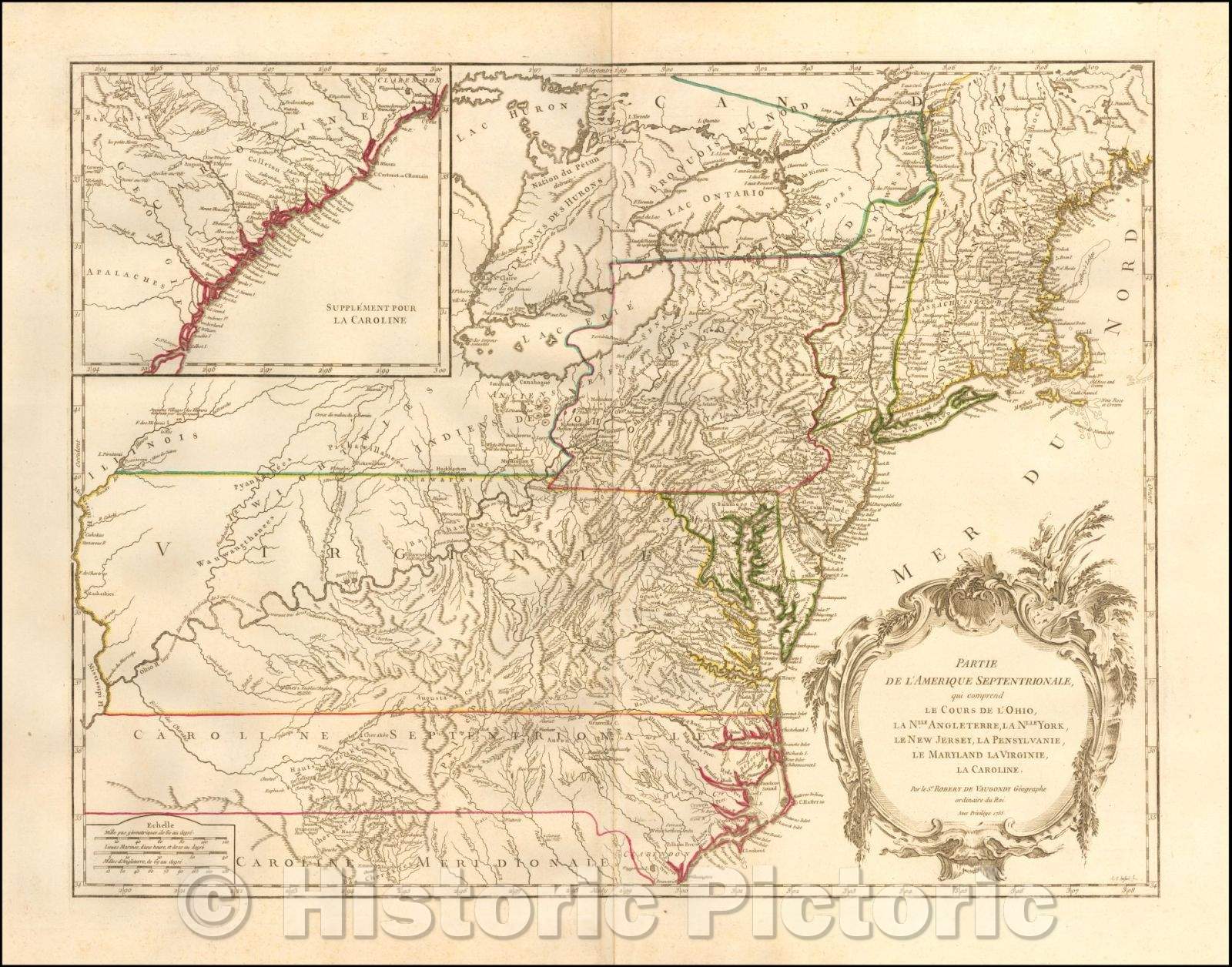 Historic Map - Partie De L'Amerique Septentrionale. Ohio, New England, New York, New Jersey, Pennsylvania, Maryland, Virginia, 1755 v1