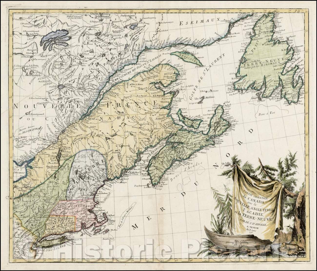 Historic Map - Partie Orientale du Canada, avec la Nouvelle Angleterre, l'Acadie, et la T :: Eastern part of Canada with New England, Acadia and Newfoundland, 1776 - Vintage Wall Art