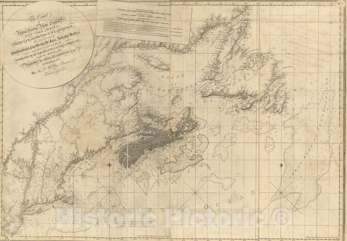 • Historical Map, 1779 The Coast of Nova Scotia, New England, New-York, Jersey, The Gulph and River of St. Lawrence : The Islands of Newfoundland, Cape Breton, St, Vintage Wall Art