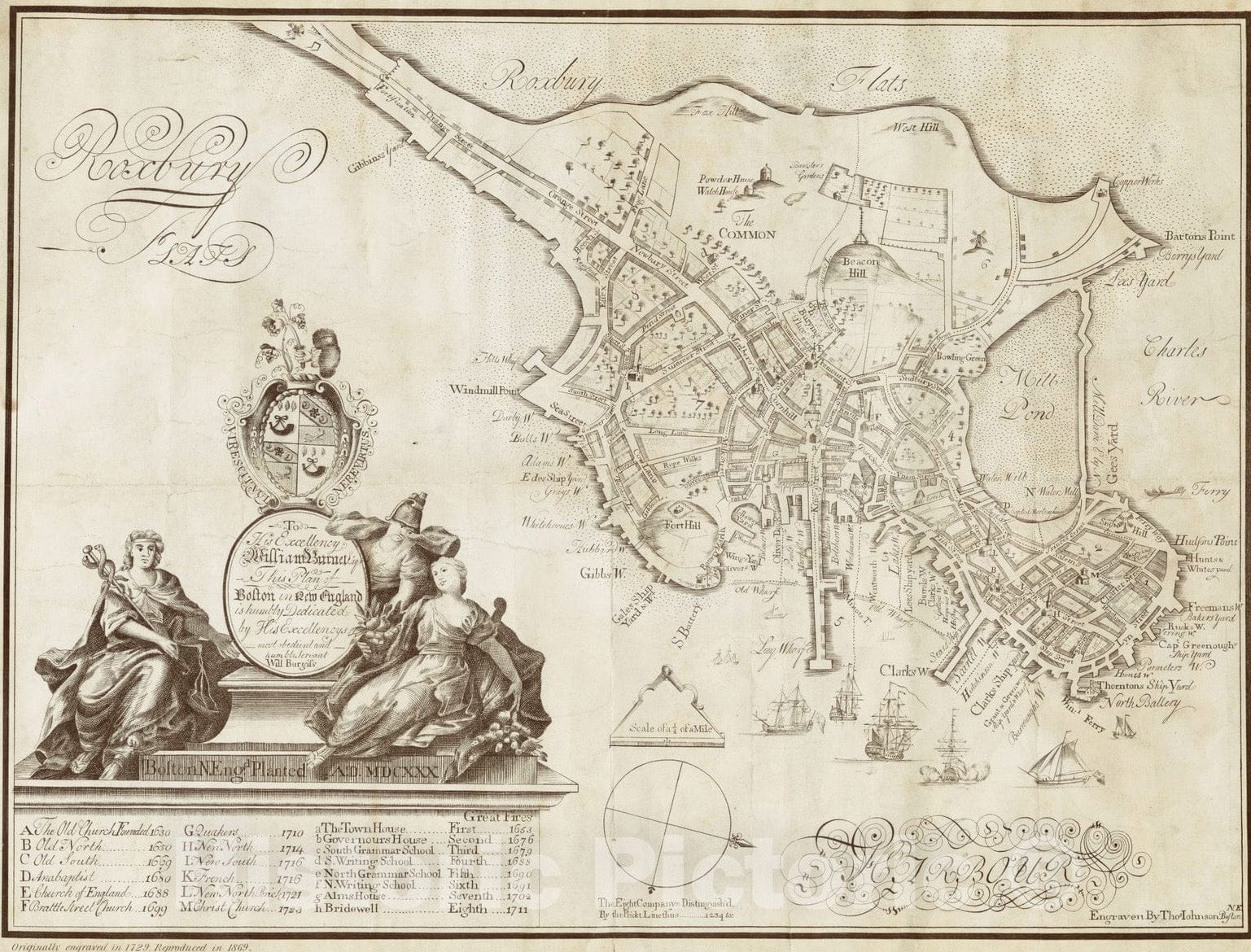 To His Excellency William Burnet, Esqr., this Plan of Boston in New England is humbly dedicated