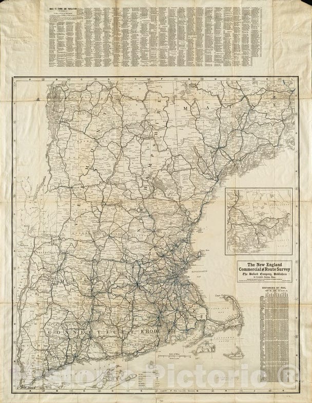 Historical Map, ca. 1913 The New England Commercial and Route Survey, Vintage Wall Art
