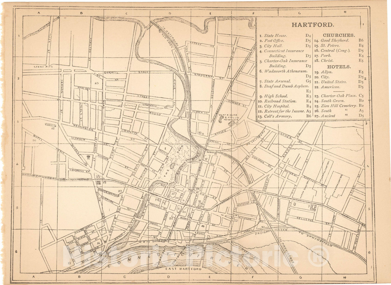Historic Map : New England, Hartford 1890 , Vintage Wall Art