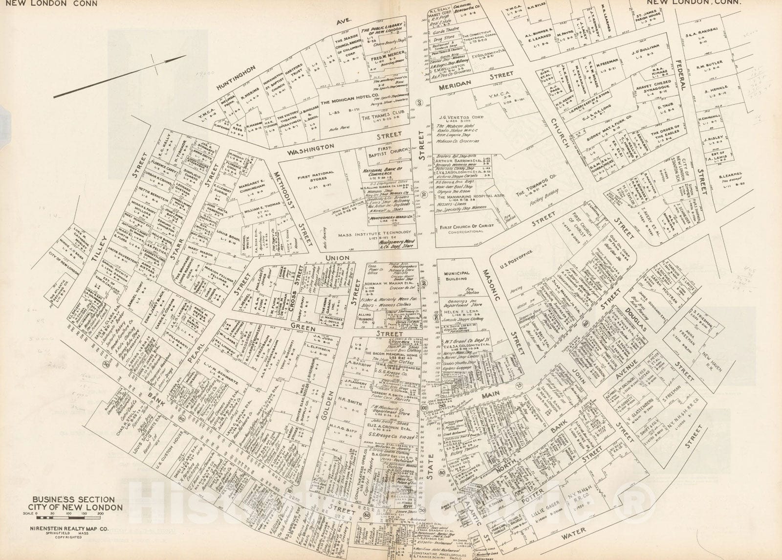Historic Map : New England States Ed., New London 1946 , Nirenstein's National Preferred Real Estate Locations of Business Properties , Vintage Wall Art