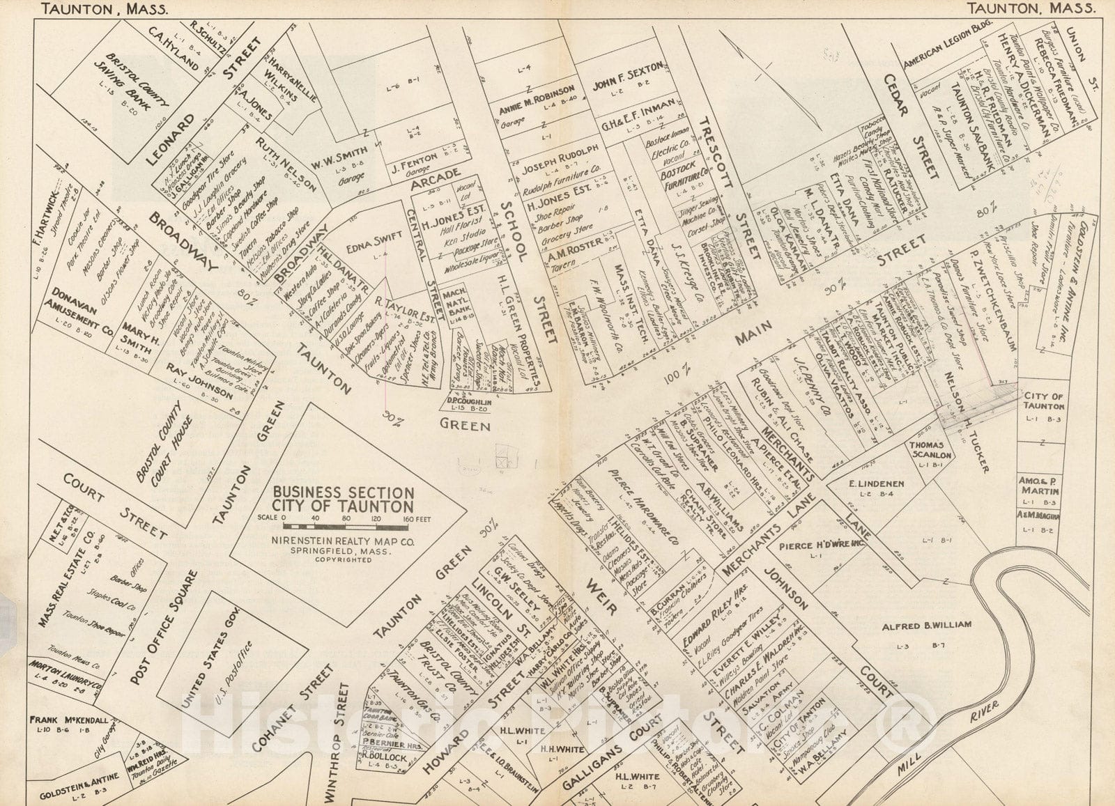 • .Historic Map : New England States Ed., Taunton 1946 , Nirenstein's National Preferred Real Estate Locations of Business Properties , Vintage Wall Art