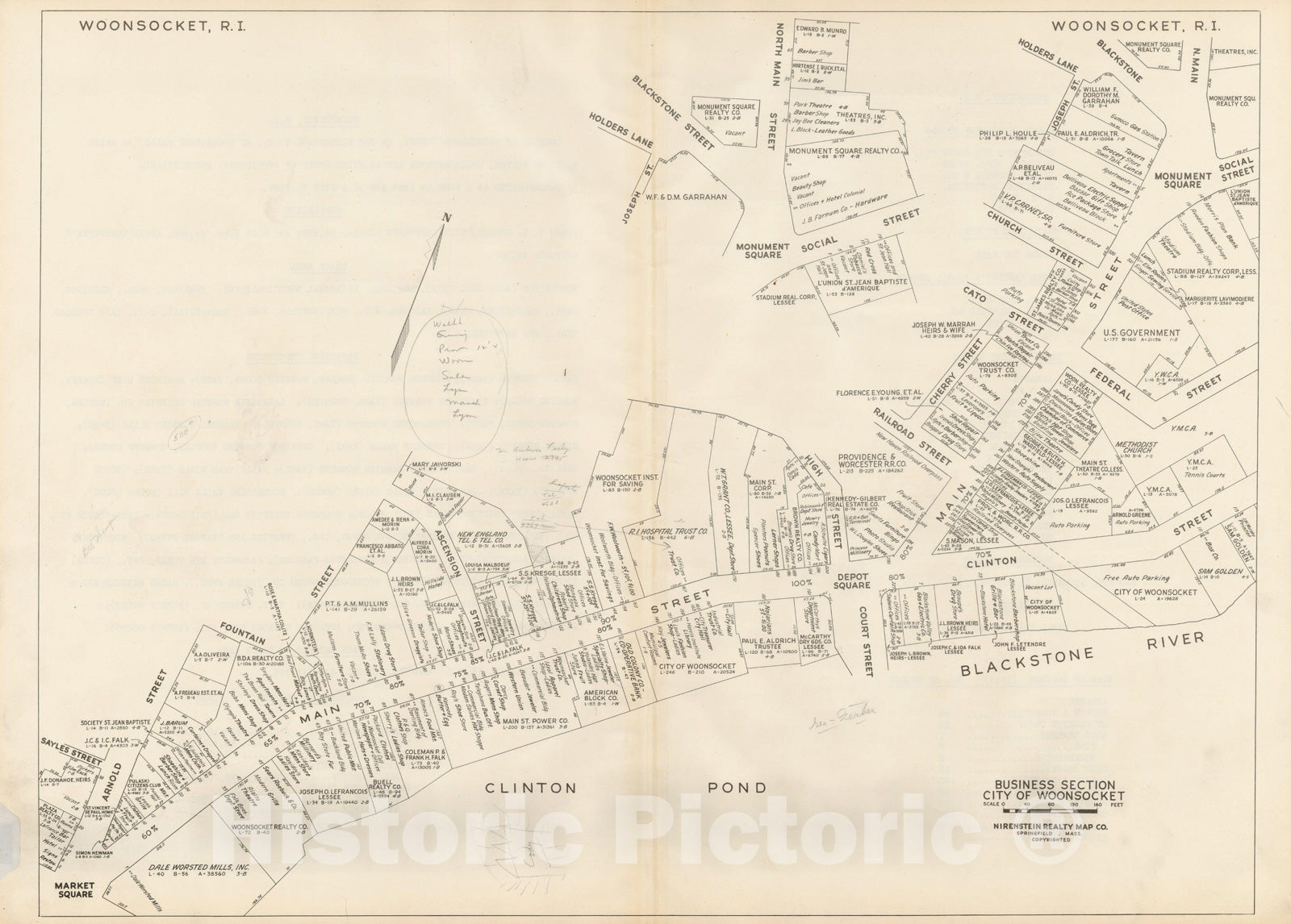 Historic Map : New England States Ed., Woonsocket 1946 , Nirenstein's National Preferred Real Estate Locations of Business Properties , Vintage Wall Art