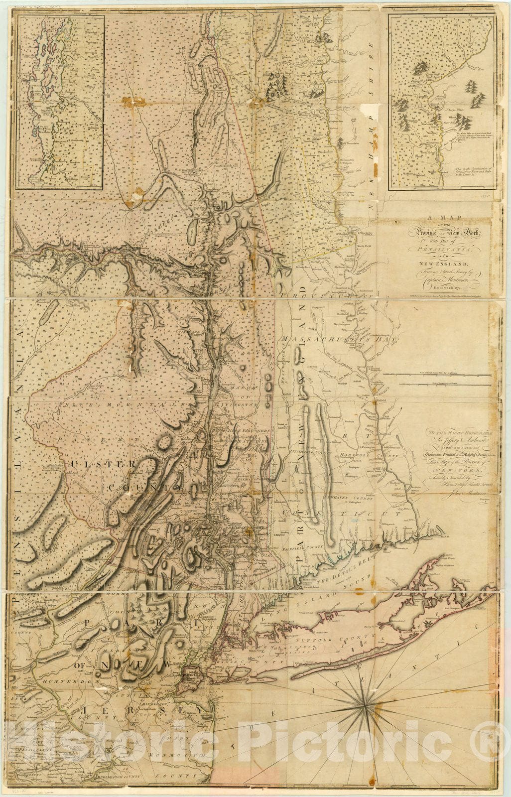 Map : New York 1775, A map of the Province of New York with part of Pensilvania, and New England , Antique Vintage Reproduction